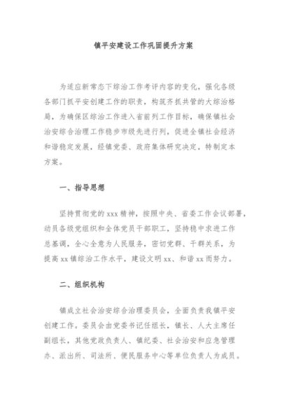 / 【七哥公文】2024年:镇平安建设工作巩固提升方案+更多免费公文+VX:QiGeGongWen2024