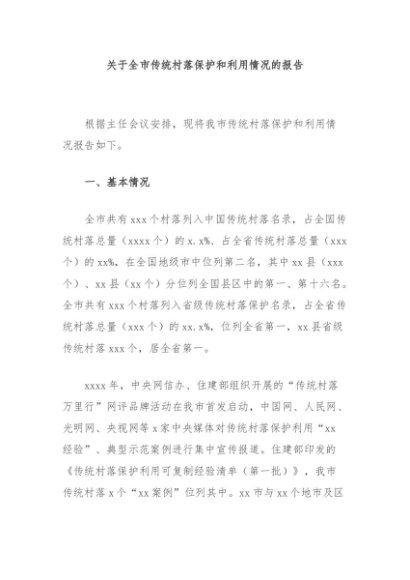 / 【七哥公文】2024年:关于全市传统村落保护和利用情况的报告+更多免费公文+VX:QiGeGongWen2024