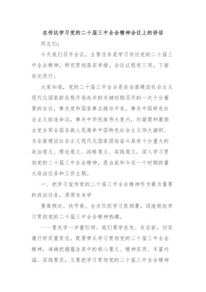 【七哥公文】2024年:在传达学习党的二十届三中全会精神会议上的讲话 (1)+更多免费公文+VX:QiGeGongWen2024