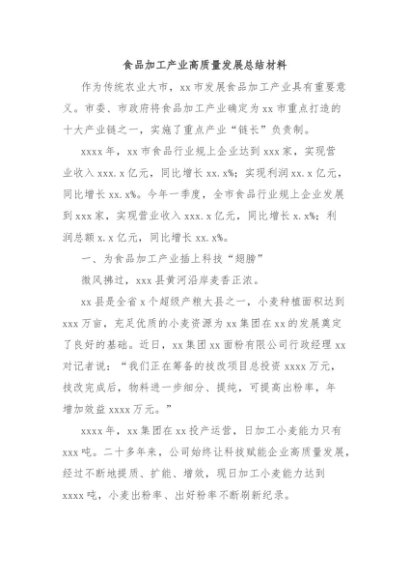 【七哥公文】2024年:食品加工产业高质量发展总结材料+更多免费公文+VX:QiGeGongWen2024