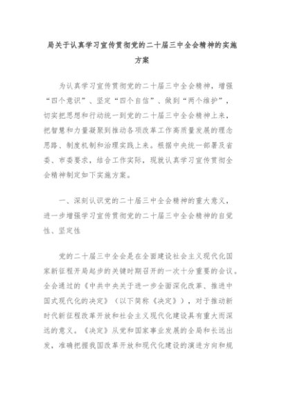 【七哥公文】2024年:局关于认真学习宣传贯彻党的二十届三中全会精神的实施方案 (1)+更多免费公文+VX:QiGeGongWen2024
