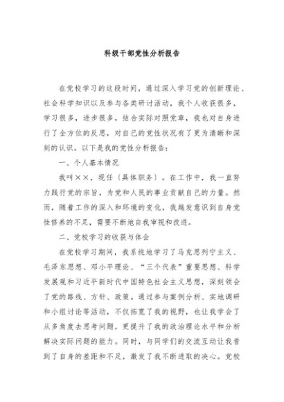 / 【七哥公文】2024年:科级干部党性分析报告+更多免费公文+VX:QiGeGongWen2024