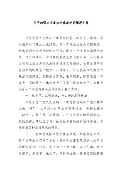 / 【七哥公文】2024年:关于加强企业廉洁文化建设的情况汇报+更多免费公文+VX:QiGeGongWen2024
