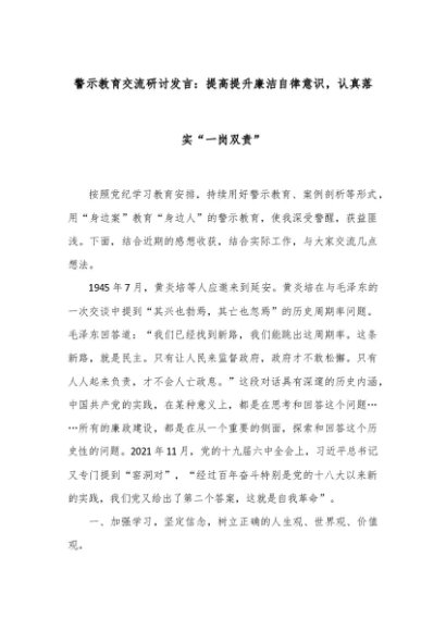 【七哥公文】2024年:警示教育交流研讨发言:提高提升廉洁自律意识,认真落实“一岗双责”+更多免费公文+VX:QiGeGongWen2024