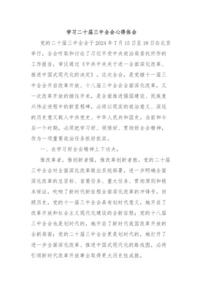/ 【七哥公文】2024年:学习二十届三中全会心得体会 (1)+更多免费公文+VX:QiGeGongWen2024