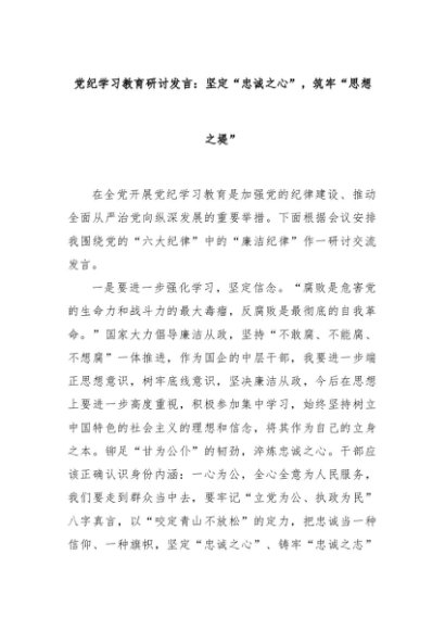 【七哥公文】2024年:党纪学习教育研讨发言:坚定“忠诚之心”,筑牢“思想之堤”+更多免费公文+VX:QiGeGongWen2024