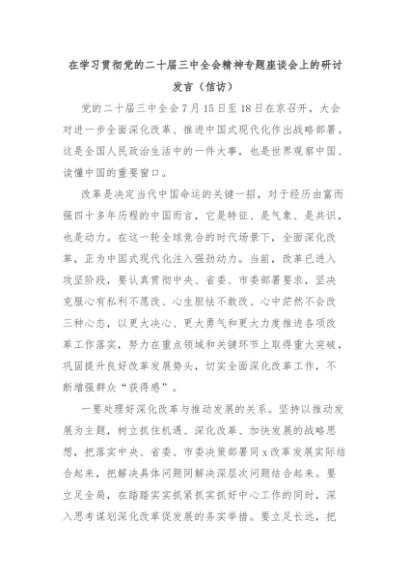 【七哥公文】2024年:在学习贯彻党的二十届三中全会精神专题座谈会上的研讨发言(信访) (1)+更多免费公文+VX:QiGeGongWen2024