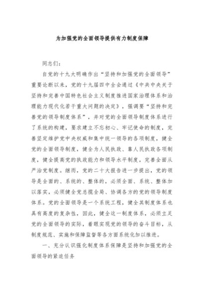 【七哥公文】2024年:为加强党的全面领导提供有力制度保障+更多免费公文+VX:QiGeGongWen2024