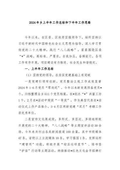 / 【七哥公文】2024年:2024年乡上半年工作总结和下半年工作思路+更多免费公文+VX:QiGeGongWen2024