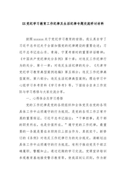 【七哥公文】2024年:XX党纪学习教育工作纪律及生活纪律专题交流研讨材料+更多免费公文+VX:QiGeGongWen2024