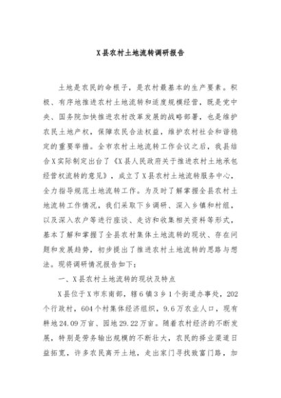 / 【七哥公文】2024年:X县农村土地流转调研报告+更多免费公文+VX:QiGeGongWen2024