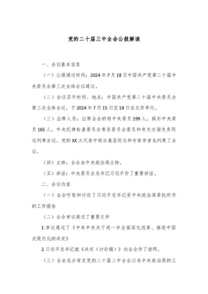 / 【七哥公文】2024年:党的二十届三中全会公报解读 (1)+更多免费公文+VX:QiGeGongWen2024