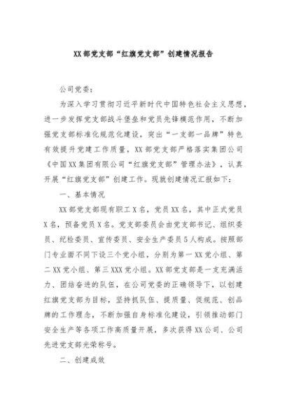 / 【七哥公文】2024年:XX部党支部“红旗党支部”创建情况报告+更多免费公文+VX:QiGeGongWen2024