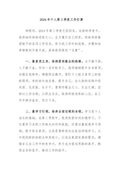 / 【七哥公文】2024年:2024年个人第三季度工作打算+更多免费公文+VX:QiGeGongWen2024