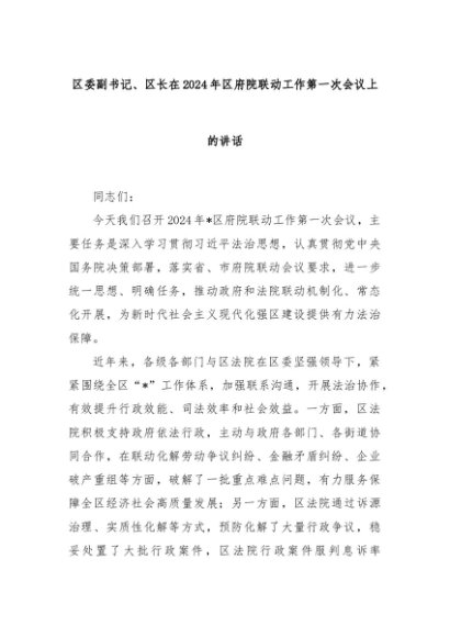 【七哥公文】2024年:区委副书记、区长在2024年区府院联动工作第一次会议上的讲话+更多免费公文+VX:QiGeGongWen2024