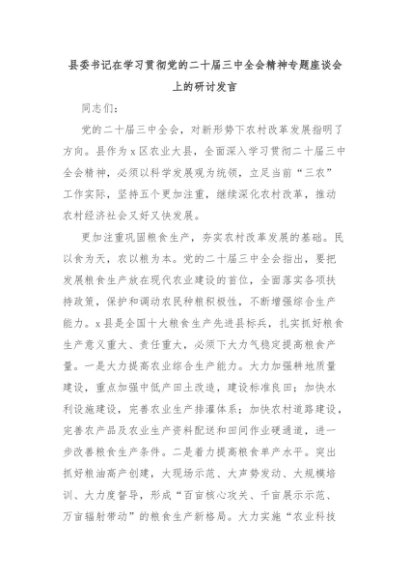 【七哥公文】2024年:县委书记在学习贯彻党的二十届三中全会精神专题座谈会上的研讨发言 (1)+更多免费公文+VX:QiGeGongWen2024