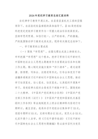 / 【七哥公文】2024年:2024年党纪学习教育总结汇报材料 (1)+更多免费公文+VX:QiGeGongWen2024
