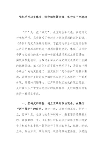 / 【七哥公文】2024年:党纪学习心得体会:深学细悟铸忠魂,笃行实干立新功+更多免费公文+VX:QiGeGongWen2024