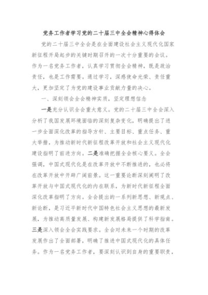 【七哥公文】2024年:党务工作者学习党的二十届三中全会精神心得体会 (1)+更多免费公文+VX:QiGeGongWen2024