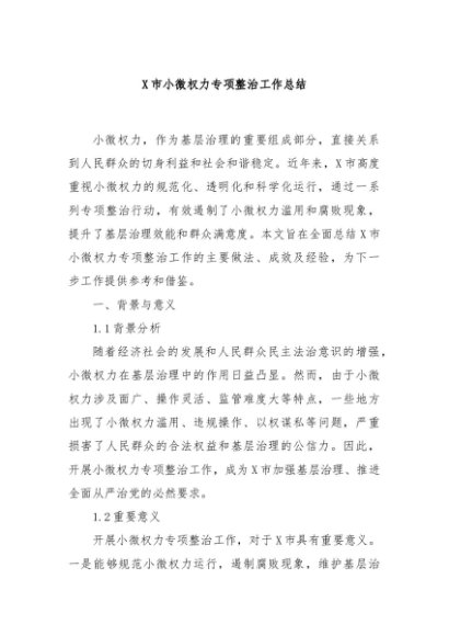 / 【七哥公文】2024年:X市小微权力专项整治工作总结+更多免费公文+VX:QiGeGongWen2024
