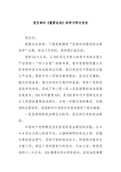 / 【七哥公文】2024年:党支部对《重要论述》的学习研讨发言+更多免费公文+VX:QiGeGongWen2024