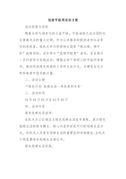 / 【七哥公文】2024年:低碳节能周活动方案+更多免费公文+VX:QiGeGongWen2024