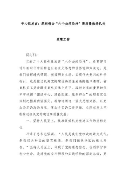 【七哥公文】2024年:中心组发言:深刻领会“六个必须坚持”高质量做好机关党建工作+更多免费公文+VX:QiGeGongWen2024