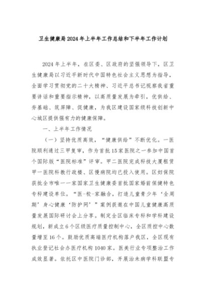 【七哥公文】2024年:卫生健康局2024年上半年工作总结和下半年工作计划+更多免费公文+VX:QiGeGongWen2024