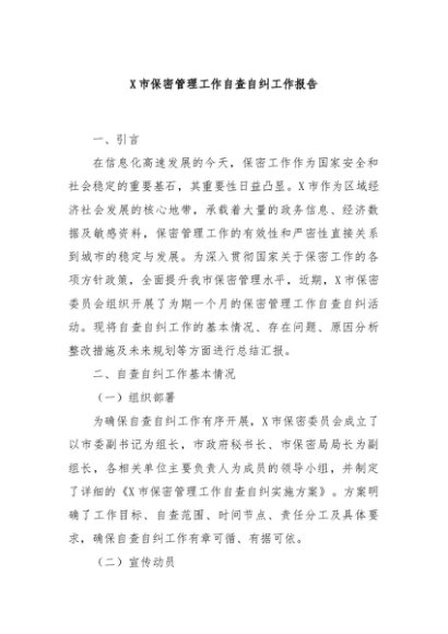 / 【七哥公文】2024年:X市保密管理工作自查自纠工作报告+更多免费公文+VX:QiGeGongWen2024