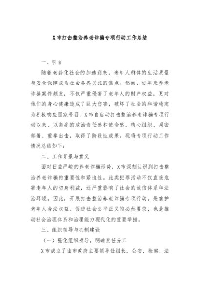 / 【七哥公文】2024年:X市打击整治养老诈骗专项行动工作总结+更多免费公文+VX:QiGeGongWen2024