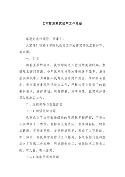 / 【七哥公文】2024年:X市防汛救灾抗旱工作总结(2)+更多免费公文+VX:QiGeGongWen2024