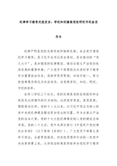 【七哥公文】2024年:纪律学习教育交流发言:学纪知纪锤炼党性明纪守纪奋发作为+更多免费公文+VX:QiGeGongWen2024