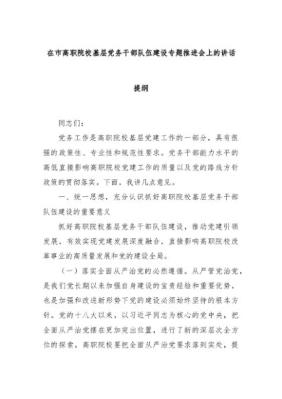 【七哥公文】2024年:在市高职院校基层党务干部队伍建设专题推进会上的讲话提纲+更多免费公文+VX:QiGeGongWen2024
