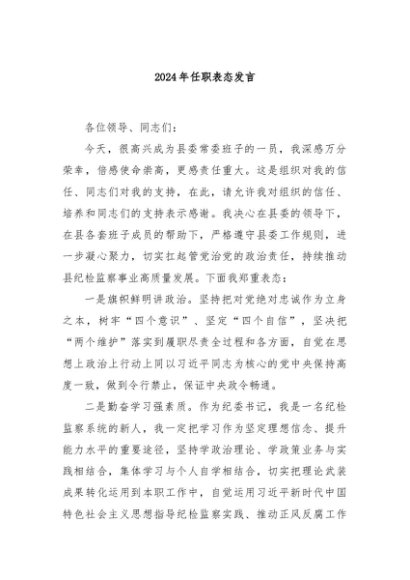 / 【七哥公文】2024年:2024年任职表态发言+更多免费公文+VX:QiGeGongWen2024