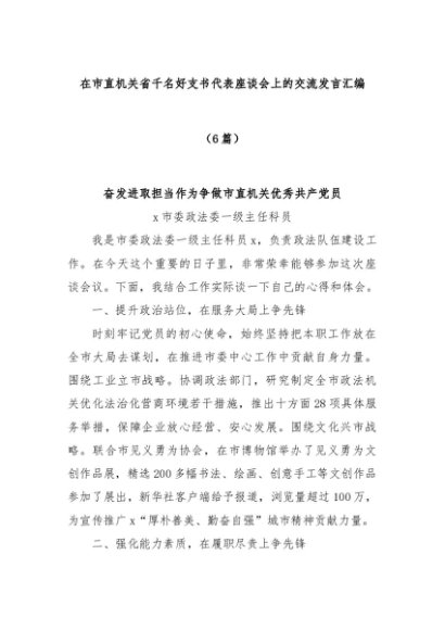 【七哥公文】2024年:(6篇)在市直机关省千名好支书代表座谈会上的交流发言汇编+更多免费公文+VX:QiGeGongWen2024