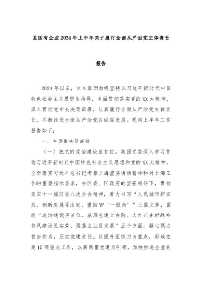 【七哥公文】2024年:某国有企业2024年上半年关于履行全面从严治党主体责任报告+更多免费公文+VX:QiGeGongWen2024