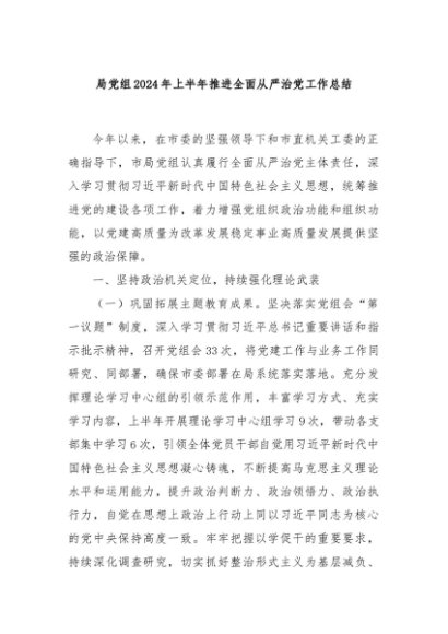 / 【七哥公文】2024年:局党组2024年上半年推进全面从严治党工作总结+更多免费公文+VX:QiGeGongWen2024