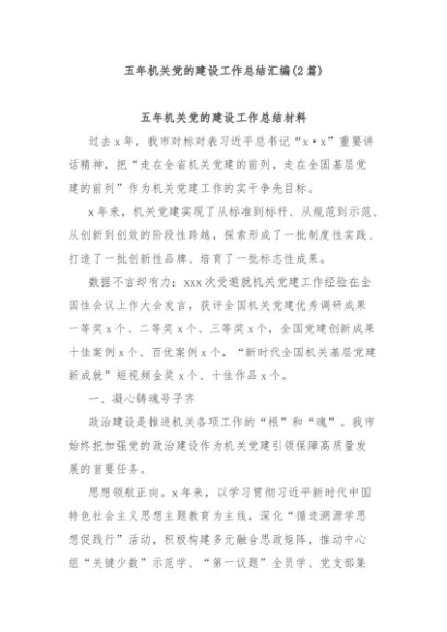 / 【七哥公文】2024年:(2篇)五年机关党的建设工作总结汇编+更多免费公文+VX:QiGeGongWen2024