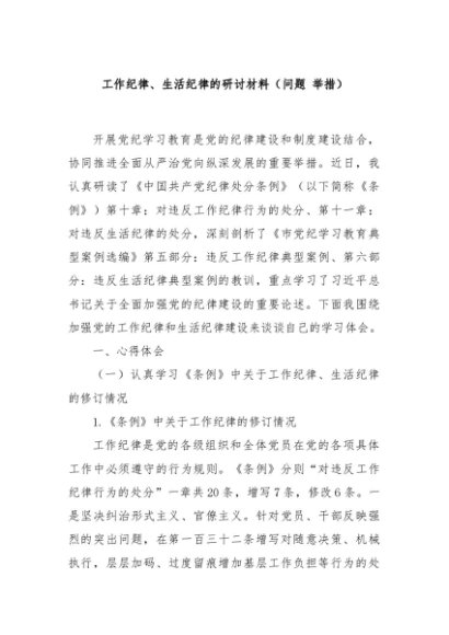 / 【七哥公文】2024年:工作纪律、生活纪律的研讨材料(问题 举措)+更多免费公文+VX:QiGeGongWen2024