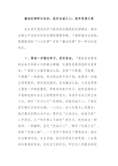 / 【七哥公文】2024年:廉洁纪律研讨发言:坚定忠诚之心,筑牢思想之堤+更多免费公文+VX:QiGeGongWen2024