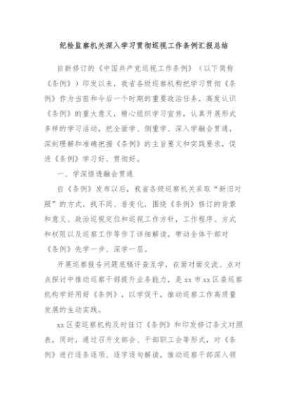 / 【七哥公文】2024年:纪检监察机关深入学习贯彻巡视工作条例汇报总结+更多免费公文+VX:QiGeGongWen2024