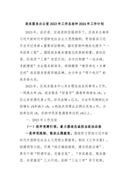 【七哥公文】2024年:政务服务办公室2023年工作总结和2024年工作计划+更多免费公文+VX:QiGeGongWen2024