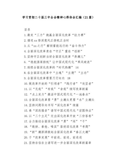【七哥公文】2024年:(21篇)学习贯彻二十届三中全会精神心得体会汇编 (1)+更多免费公文+VX:QiGeGongWen2024