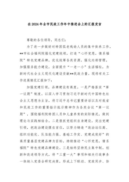 / 【七哥公文】2024年:在2024年全市民政工作年中推进会上的汇报发言+更多免费公文+VX:QiGeGongWen2024