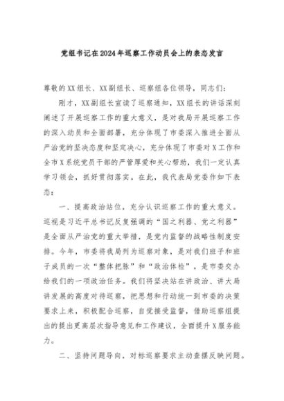 / 【七哥公文】2024年:党组书记在2024年巡察工作动员会上的表态发言+更多免费公文+VX:QiGeGongWen2024