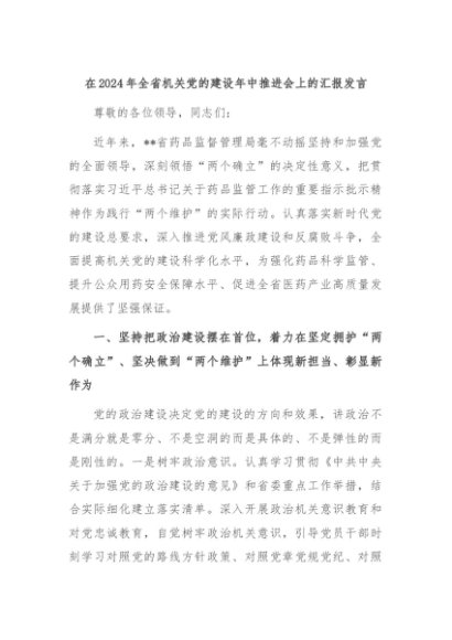 【七哥公文】2024年:在2024年全省机关党的建设年中推进会上的汇报发言+更多免费公文+VX:QiGeGongWen2024