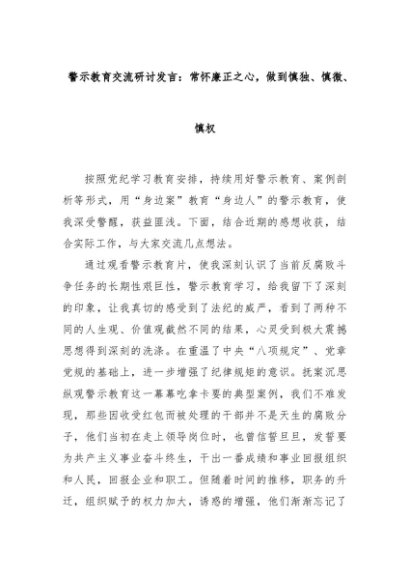 【七哥公文】2024年:警示教育交流研讨发言:常怀廉正之心,做到慎独、慎微、慎权+更多免费公文+VX:QiGeGongWen2024