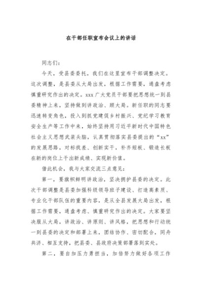 / 【七哥公文】2024年:在干部任职宣布会议上的讲话+更多免费公文+VX:QiGeGongWen2024