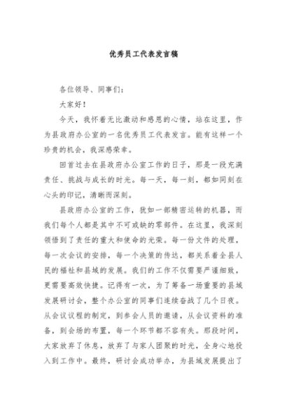 / 【七哥公文】2024年:优秀员工代表发言稿+更多免费公文+VX:QiGeGongWen2024