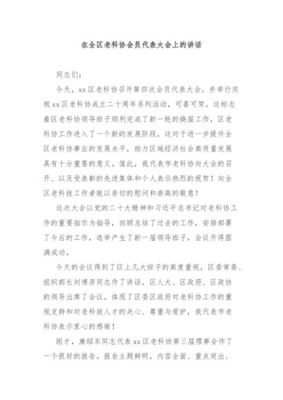 / 【七哥公文】2024年:在全区老科协会员代表大会上的讲话+更多免费公文+VX:QiGeGongWen2024